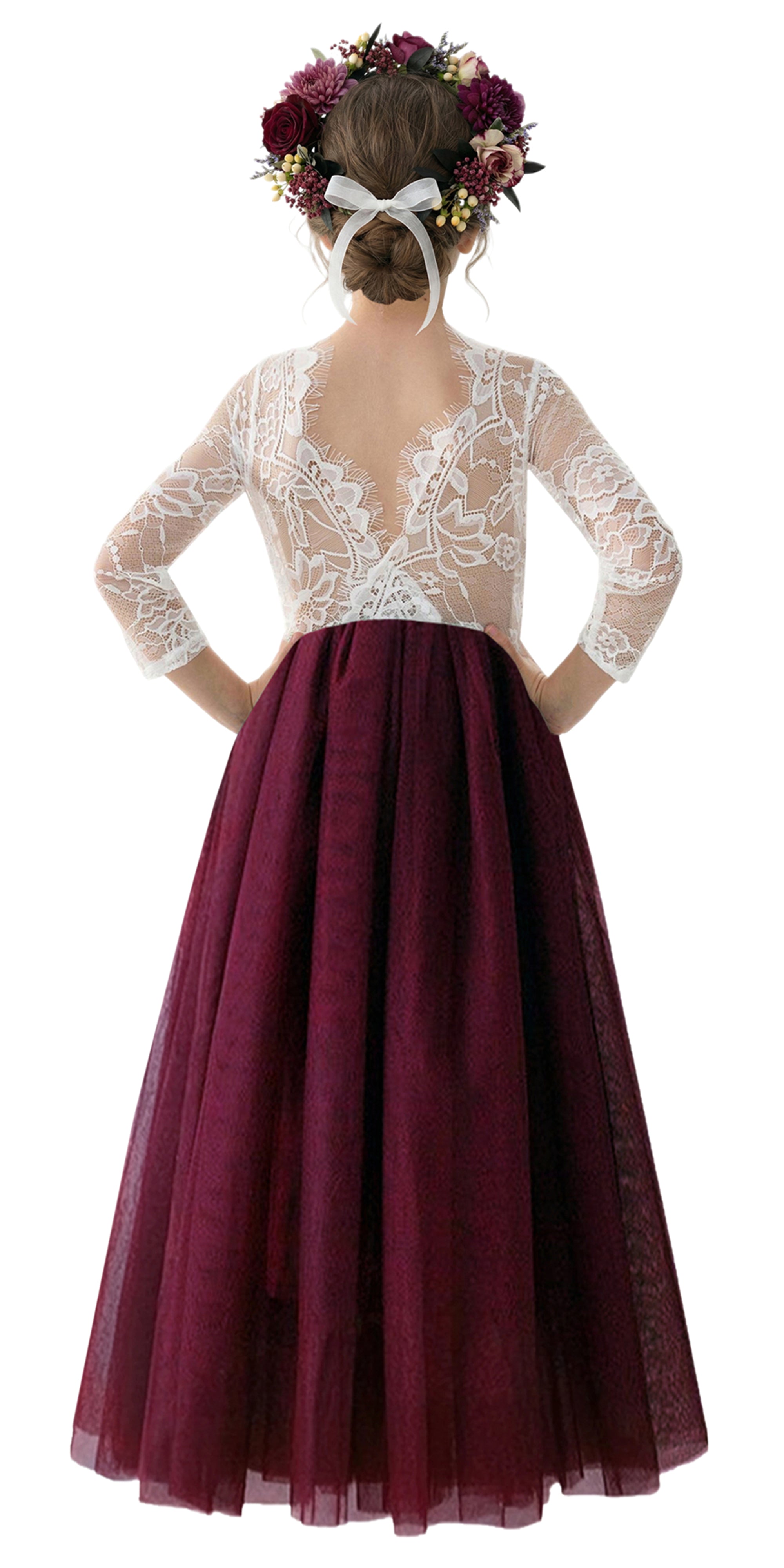 2Bunnies Rose Lace Tulle Long Sleeve Maxi Flower Girl Dress