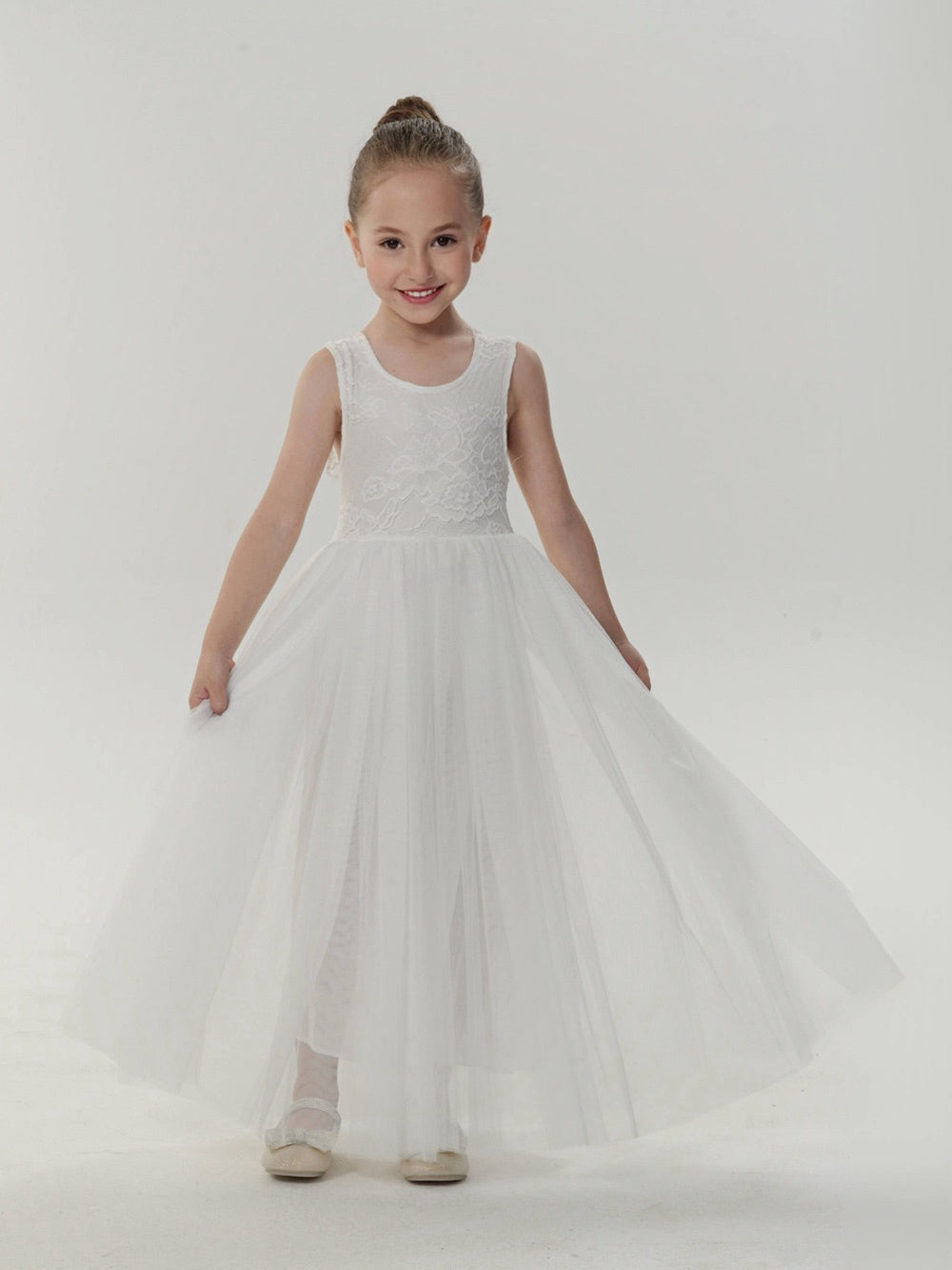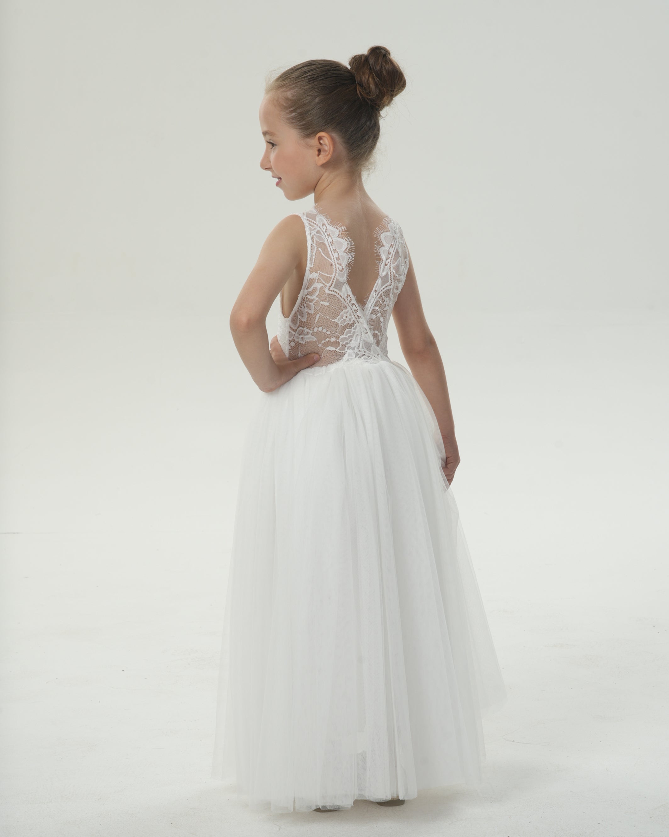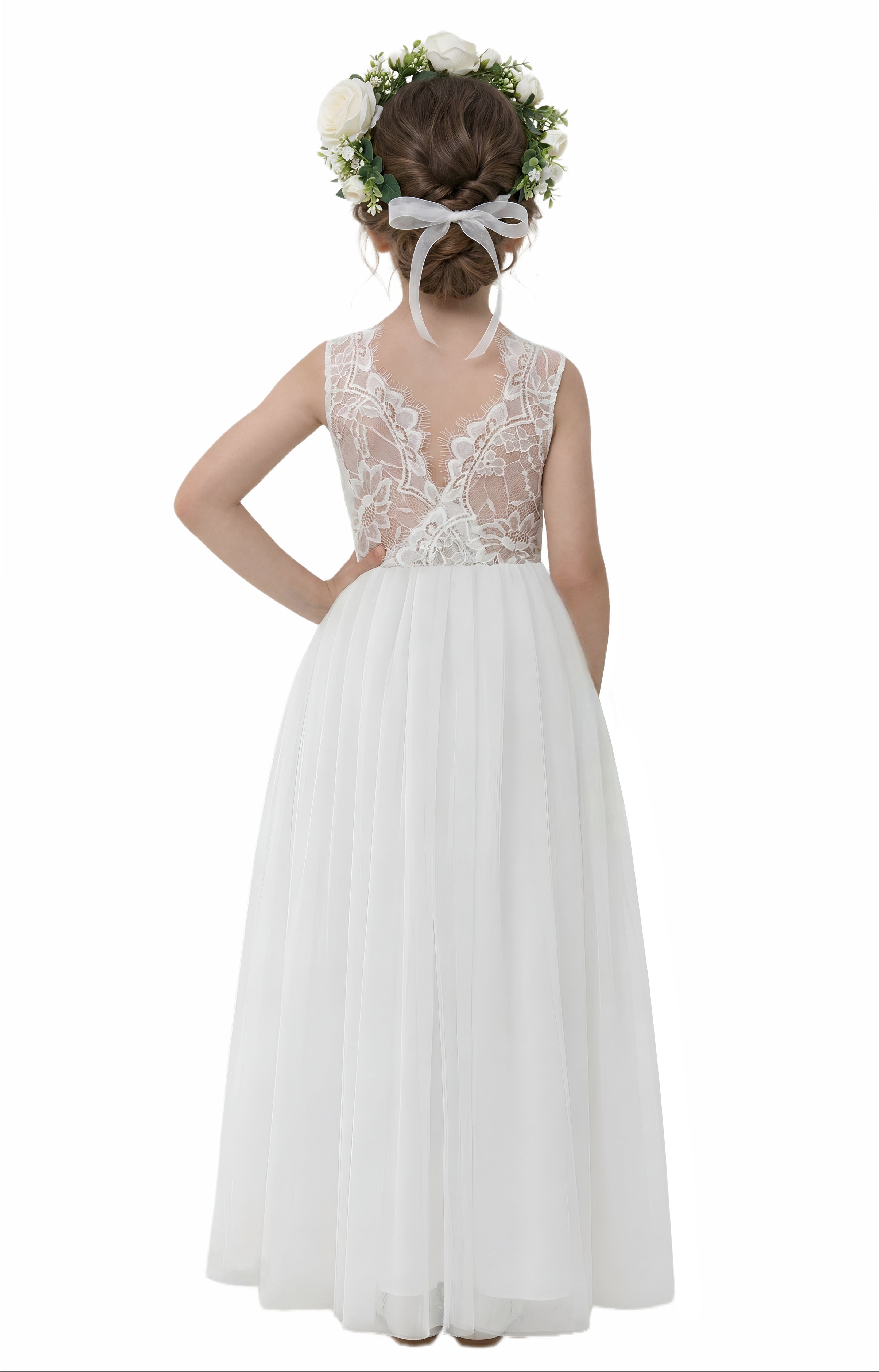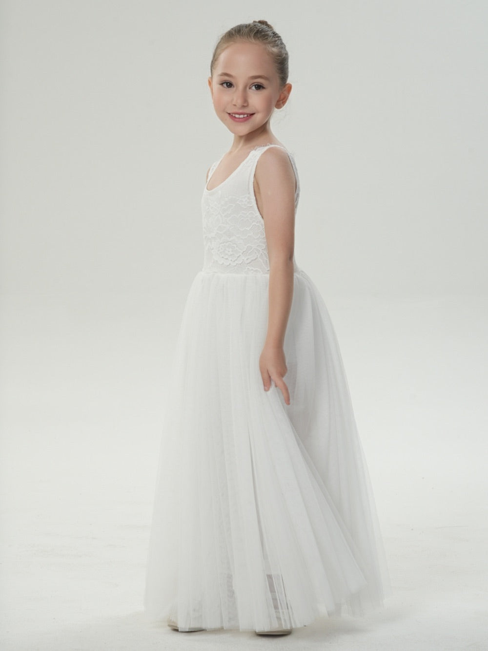 Rose Lace Sleeveless Maxi Flower Girl Dress in White
