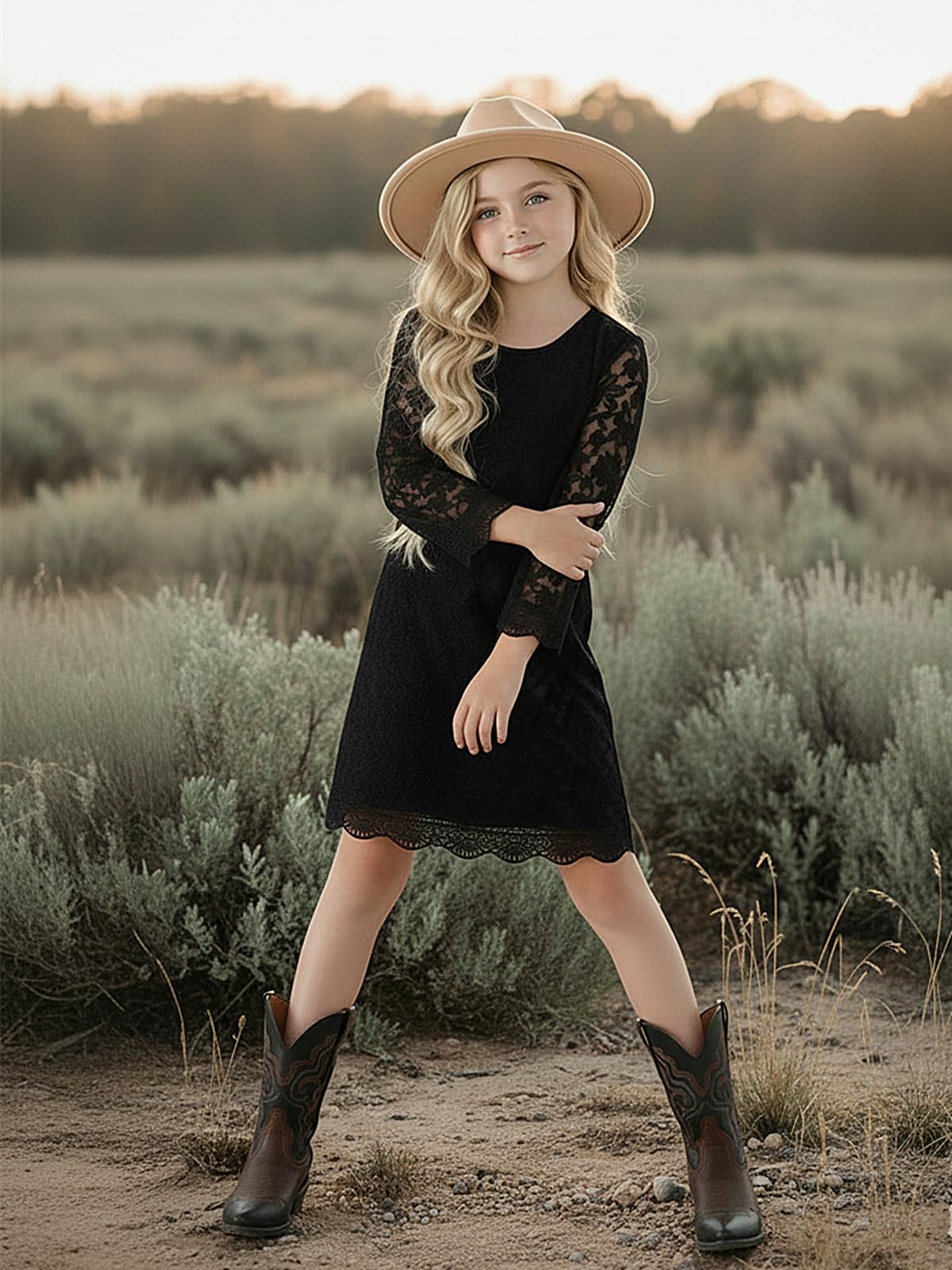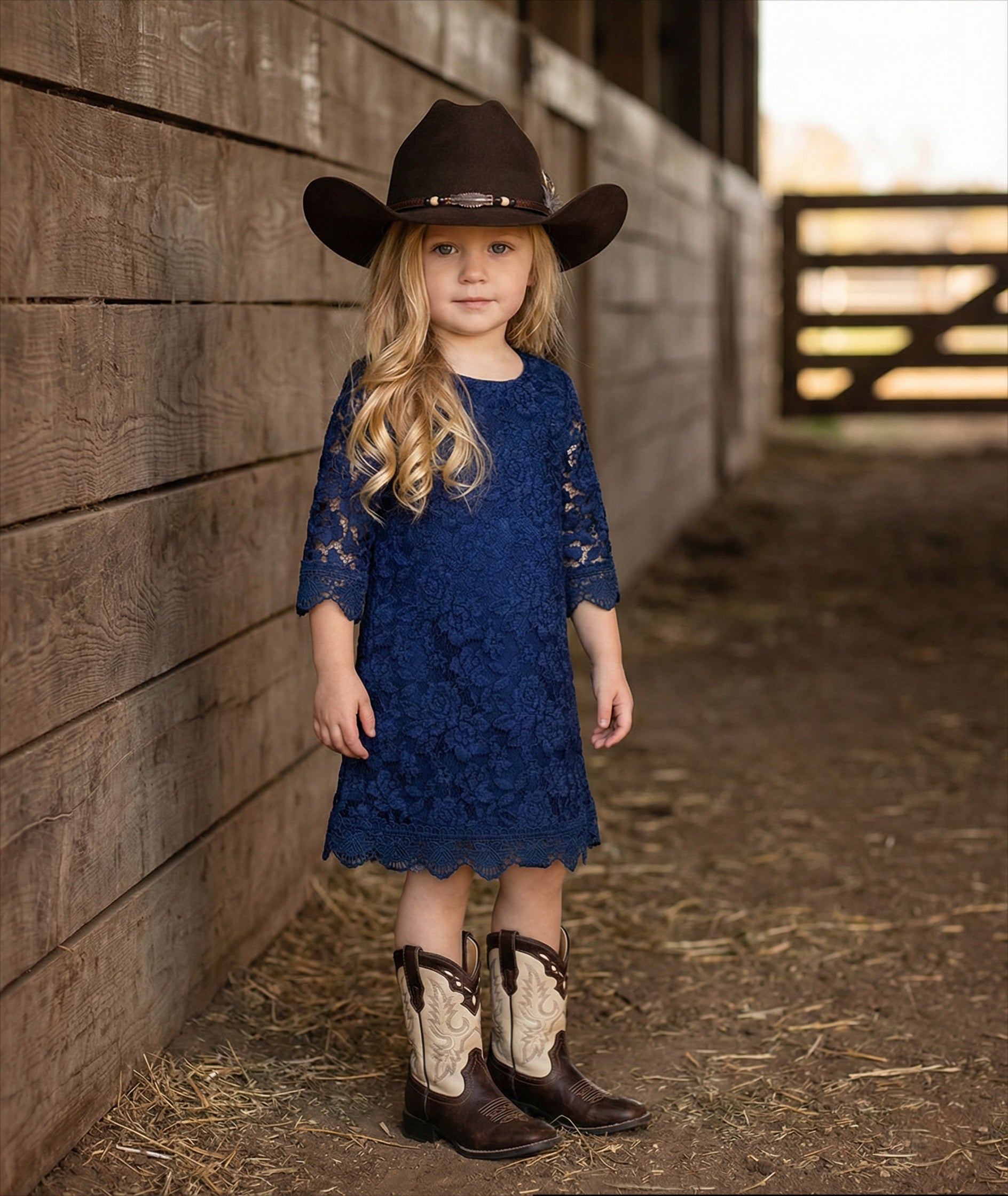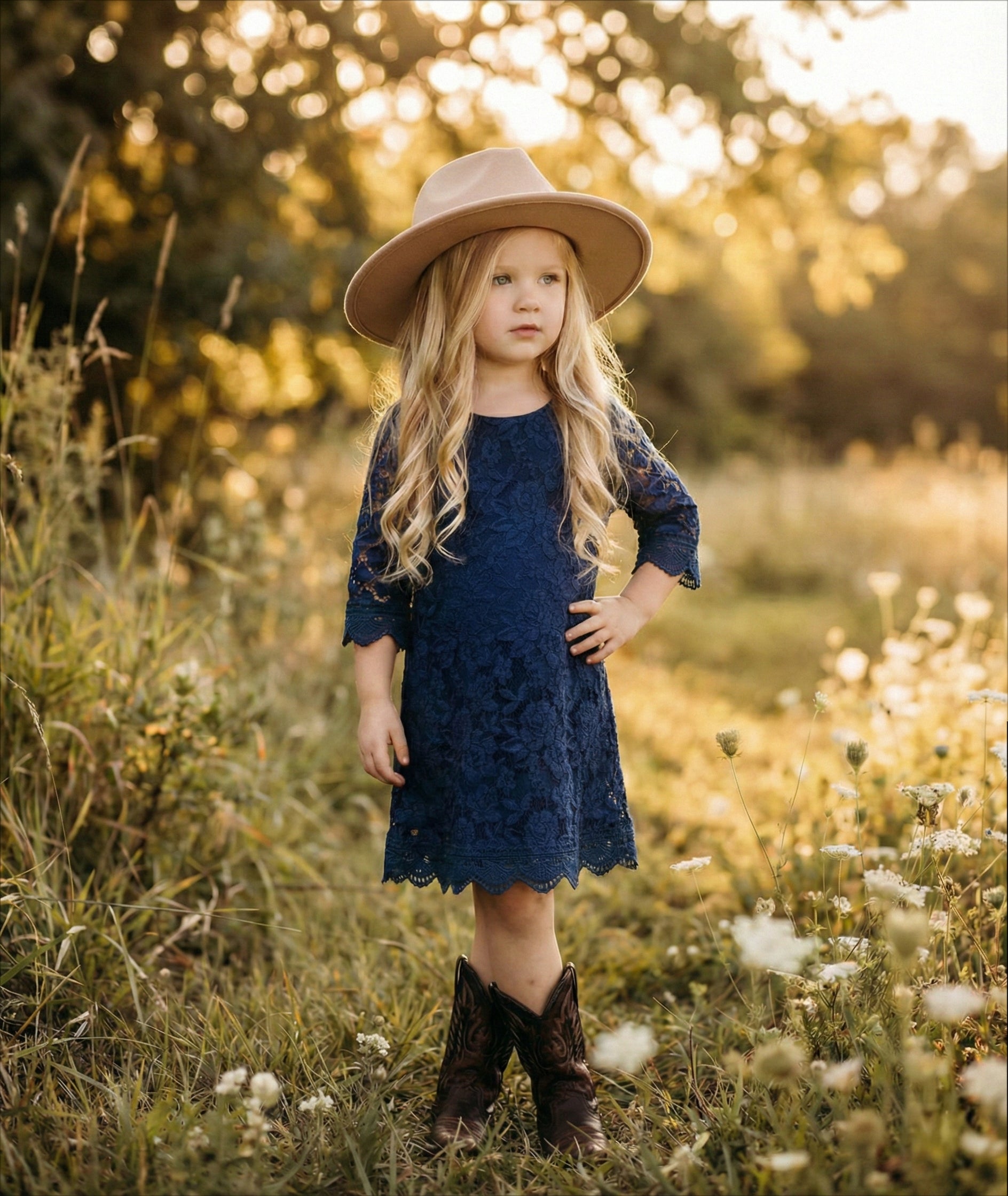 2Bunnies Girls' 12M-12yr Boho Country Rustic Lace Sleeve Flower Girl Dress
